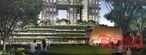 SCDA建筑事务所设计了新加坡Skyterrace Dawson项目,旨在解决新加坡日益扩大的公共住宅需求。预计项目将于2015年完工。新加坡人口从2000年的400万升至2011年的520万,项目方案应对了人口增长问题,位于城市中心的Dawson区,包含五座40层至43层的塔楼,每座楼均带有停车场裙楼。项目设计突出于绿化设施的无缝连接,在一层设有茂密的景观,并设置了横跨不同楼宇的高空花园。绿化桥梁使得住户享受不乘电梯的乐趣,增强了社区概念。项目设计了相互连接的复式户型,满足大家庭需求,在垂直布局中营造几代同堂空间。