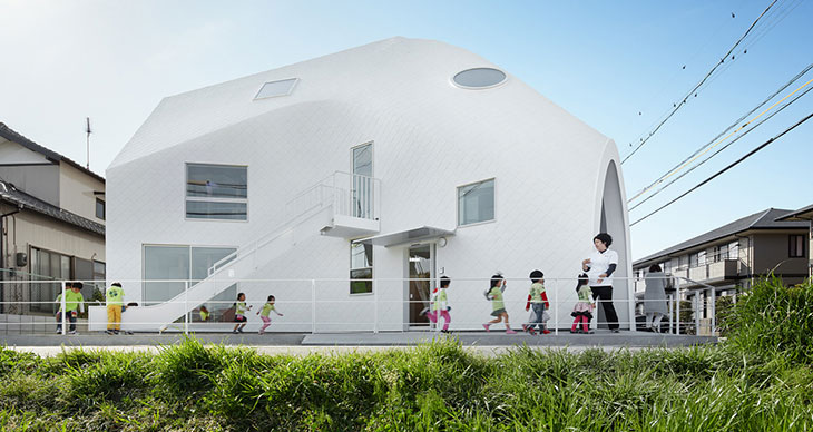 MAD建筑事务所完成了其在日本的首个项目——位于Okazaki的幼儿园。项目呈现白色雕塑外形,被称为四叶草幼儿园。建筑曾经是一个两层住宅,由于面积狭小,无法满足业主要求。幼儿园面朝田地和远处的山景,这是爱知县典型的环境元素。项目要求设计一座当代教育建筑,让儿童享受如同家中一般的舒适感,在自然环境中快乐成长。