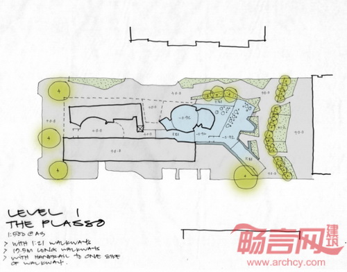 设计师采用研究区域作为概念化基础,在设计早期阶段形成了两大主题。第一种主题是“分层法”概念,指的是Mawson湖地区干涸的溪流、湖泊和湿地文脉。层次的形成在规划和覆层系统中均得到了明显展现。第二种主题是“筑造和成型”,该概念运用于设计阶段,通过规划设计和模型制作体现。建筑的外部空间名称是“The Plasso”,该名称源自希腊语,意为“建造或塑造材料或物质”。