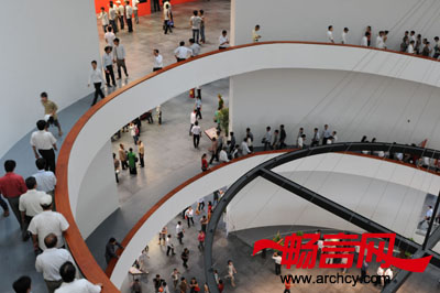 经由螺旋形楼梯,游客可以到达上一层的展馆。与整个博物馆的设计特点一样,在螺旋形楼梯上,游客在走路的同时,还能观看入馆大厅和各展厅的展品。博物馆的一至三层都用作展览,四层里有会议室、研究室、办公室和图书馆。馆内的空地可以举办大型的展会。