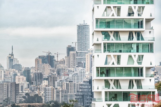 荷兰Orange建筑事务所设计的贝鲁特方体(The Cube)住宅楼日前建成。项目方案是在2011年完成的,住宅楼位于一座山上。这座50米的建筑位于城市东区,设计旨在体现空间优化,采用单一的平面布局,所有19套公寓均拥有全景视野。每个楼层略微带有旋转和不规则造型,营造出公寓的户外空间。叠加的14个楼层创造了面积介于117到234平米的不同户型公寓,室内采用连贯的空间格局,设有宽敞的阳台和落地窗。