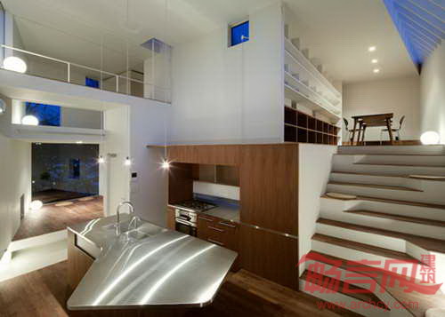 日本建筑师Kazuhiko Kishimoto设计了位于横滨的住宅。住宅特点是下方拥有公共座位区和美术馆。项目一层几乎不设任何墙壁,因而可以用作当地社区美术馆和座位区。作为ACAA建筑工作室的主持建筑师,Kishimoto将项目的最底层规划成一系列庭院和宽阔楼梯结构。楼梯采用柳木,欢迎宾客坐下休息。此外,环状凹陷空间成为人们休息和享用便餐的场所。