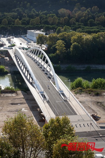 罗马市长Giovanni Alemanno近日为Ponte della Musica桥举行了揭秘仪式,这座桥是一千年来首次将位于Monte Mario西岸的奥林匹克体育场和Quartiere Flaminio连接以来。Ponte della Musica桥被设计成为一个开放的公共区域,可以进行节日庆典、会展和市集,未来还会是有轨电车和巴士的必经之地。该项目由Buro Happold建筑事务所设计。