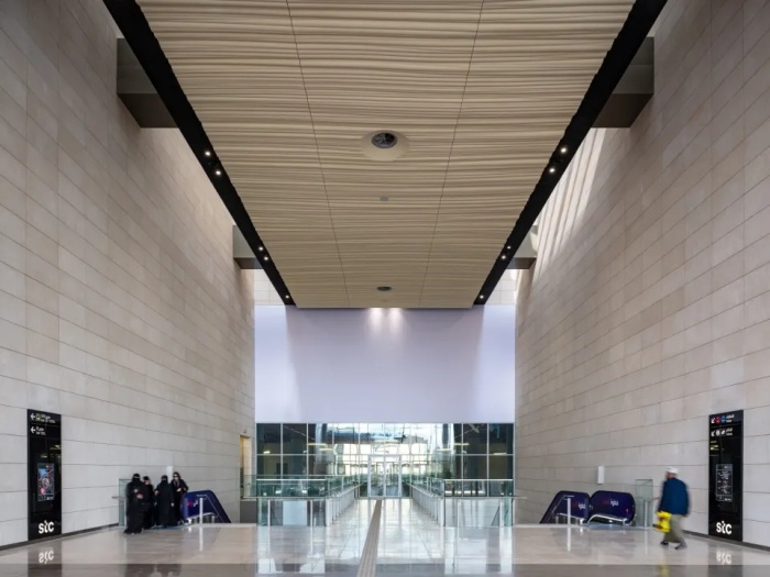 作为沙特首个地铁系统的重要枢纽,由Gerber Architekten设计的STC地铁站是四大换乘主站之一,是一个集合地铁换乘和商业空间的交通枢纽综合体。整座建筑宛如一片从地面跃然浮起的沙丘,悬桓在这座现代化首都的大地之上。