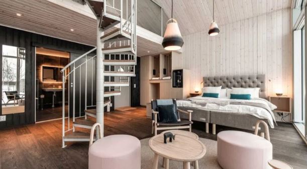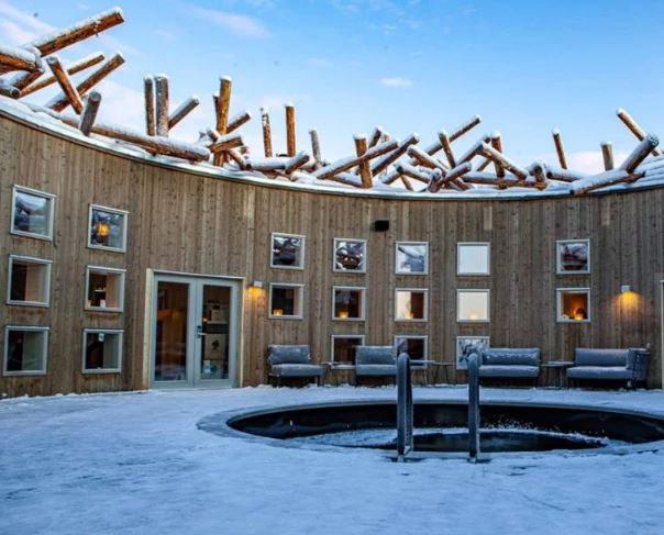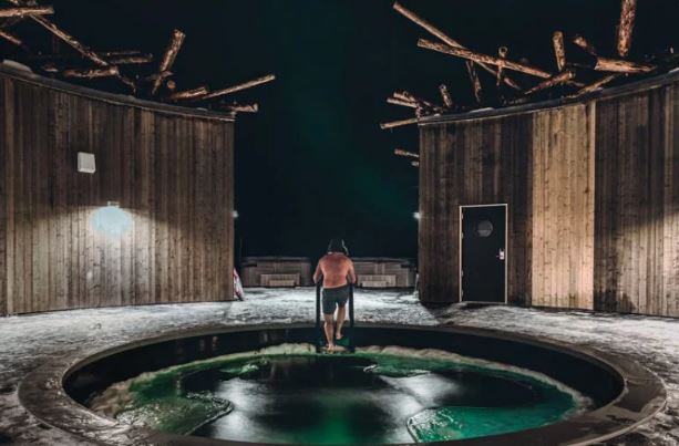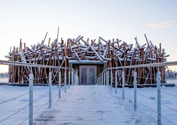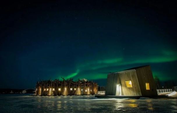 名为“北极浴场”,是瑞典全新的康健项目。漂浮在Lule河上,酒店已开门营业。独特的酒店设计方案在2018年公布,由Bertil Harstrom及Johan Kauppi设计,包含形同鸟巢的漂浮环形主建筑以及周边环绕的木屋。酒店在冬季将沐浴北极极光,而夏季则处于午夜阳光中,鼓励游客沉浸自然奇观,并减少对环境足迹影响。