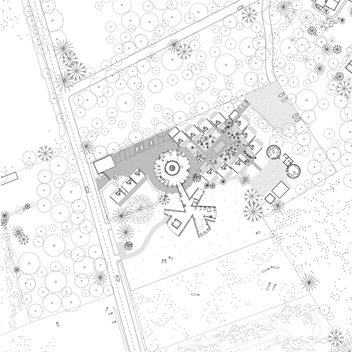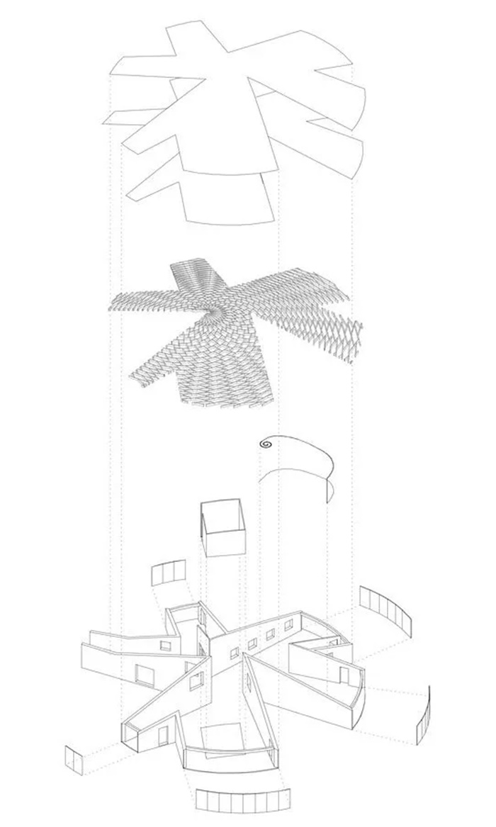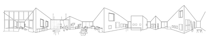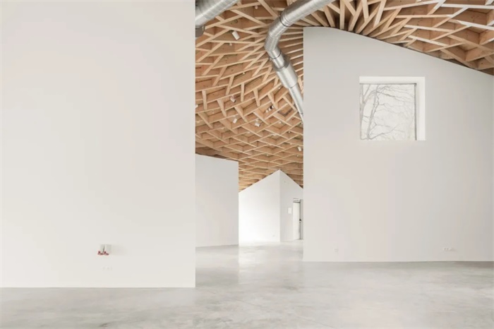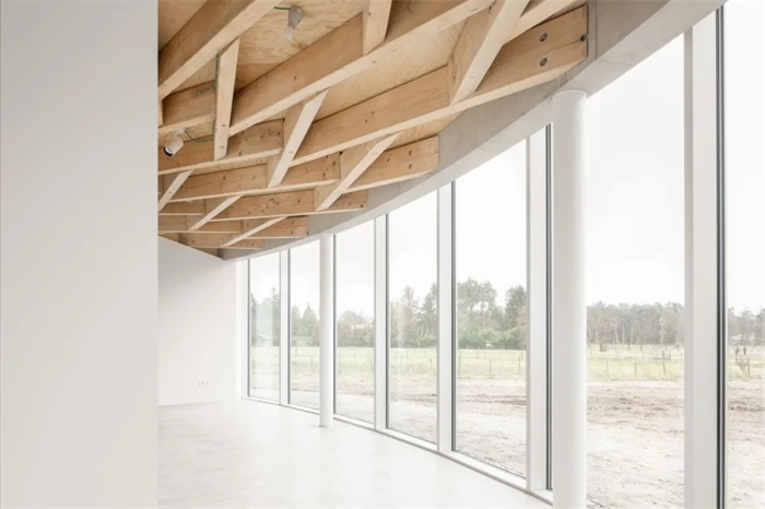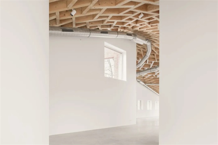 比利时Kasterlee文化展厅就像“町角(Machikado)”,这个日语单词指城市角落,类似法国的街角走廊。像十字路口一样,同时保留集中和扩散的空间特性,鼓励城市生活的互动和独立关系。新展馆首先是一个生产场所,内含版画工作室和工作坊,装满了各种机械设备和印刷机。因此,该空间不应该设计为美术馆而是工作室。其材料和饰面十分简洁,没有隐藏任何设备元素,如电缆,通风管道等。