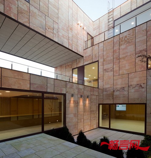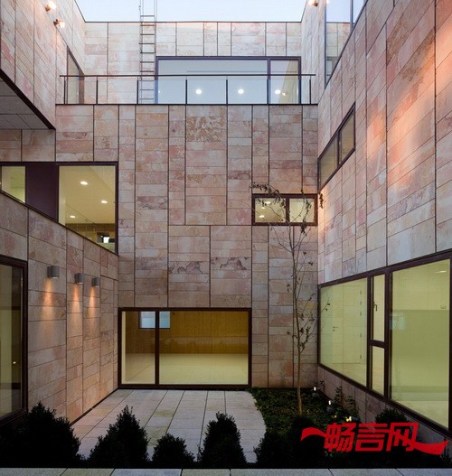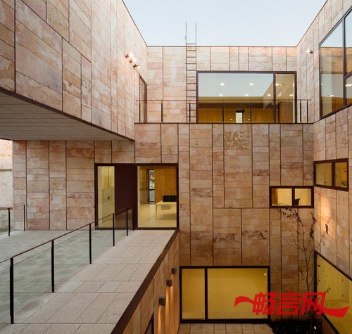 室内材料也是为了加强建筑的结实感而特别选择的,大窗户几乎都朝向庭院的一侧,这是为了凸显办公楼“石板建筑”的特点。