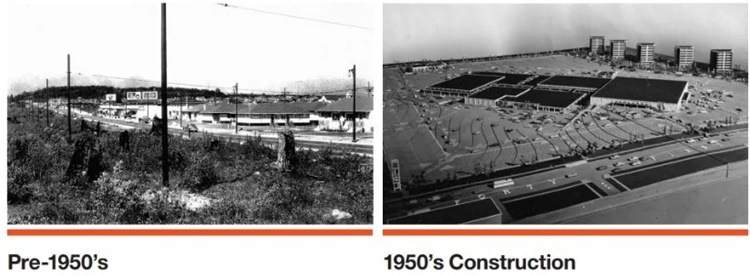 该基地的原址可以追溯到20世纪50年代,之前基地一直被太平洋铁路拥有,后转为商用。橡树岭商场(oakridge mall)是温哥华的有史以来的第一座商场,也是第一座用地变更(Rezoning)后设计的建筑。如今担负着westbank的野心和政府的重新规划,这边基地再一次成为了温哥华之最——历史上最大的开发项目。