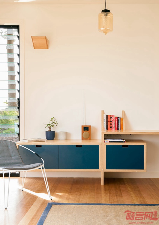 澳洲Archiblox工作室完成了悉尼郊外海滩的一处悬崖上的住宅设计。这是一座106平米预制住宅,设计公司擅长预制模块化施工,利用这一专长,设计出对环境影响极小、施工对生态系统影响最小化的住宅。整个施工周期仅有六周,三角形空间为东西朝向,顺应海风方向,有利于自然通风。最长的外立面面朝北部海滩,因而设有较大的窗户,让户主享有充足光照。