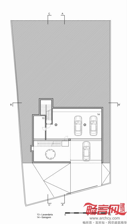 地下室主要分布着洗衣房、储物间和车库等。由于房子两边的马路高度不一样,从南面看,房子只是一个2层结构,而北面则多出了一层地下室,成为3层结构。
