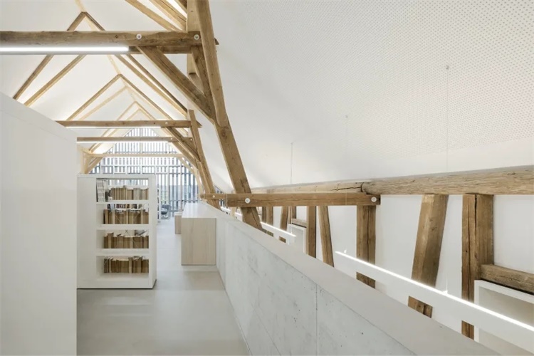 项目核心是尊重建筑遗产,将位于德国Kressbronn市中心的旧谷仓改造成现代化、无障碍图书馆,并保留其特点。旧式农舍改造既要保留建筑特色,又要保留深悬挑及遮蔽性屋顶。改造后,精致的木制开放式结构取代了旧立面,对现有结构做出敏感回应,同时实施温和修改。从马厩建筑历史意义和人们与马厩的情感联系出发,对建筑重新定位,采用有限建筑干预,不压制建筑历史。通过保持现有城市结构,不增加外部设施,不改变引人注目的、悬挑马鞍形屋顶,强化了具有保存价值的历史建筑结构。