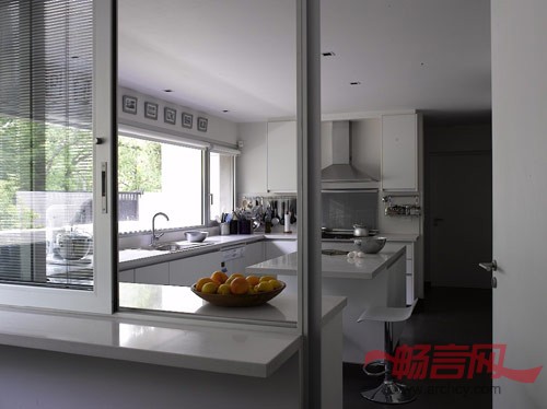 家庭空间向外扩展到一个大型的半露天场地,在那里设有烧烤和饮酒区。游泳池与这个区域相融合,成为第一层建筑结构的一个重要连接点。起居室和餐厅设有双层楼高户外走廊,即使在它的遮蔽之下,也如同置身室外一样。所有半遮蔽区域都是相互连接的。