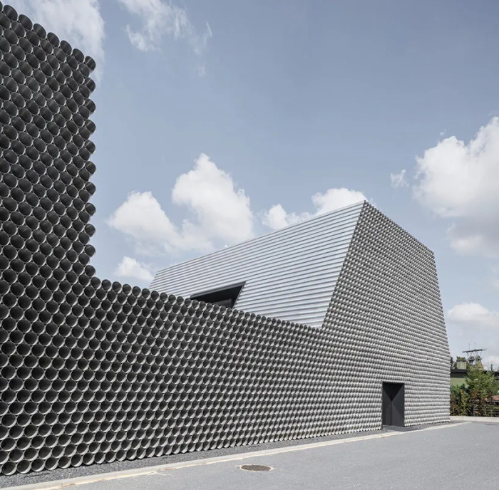 为塑造这一独特建筑形态,设计团队创新性地选用客户所经销的工业管道作为核心材料。在控制成本的同时追求视觉呈现,建筑师提出构建形似管道堆叠的建筑结构方案。此设计不仅实现了对客户库存材料的高效利用(以批发价获取),更成为直观展示 Gambit 公司业务的实体广告牌,向过往行人传递企业核心业务信息。