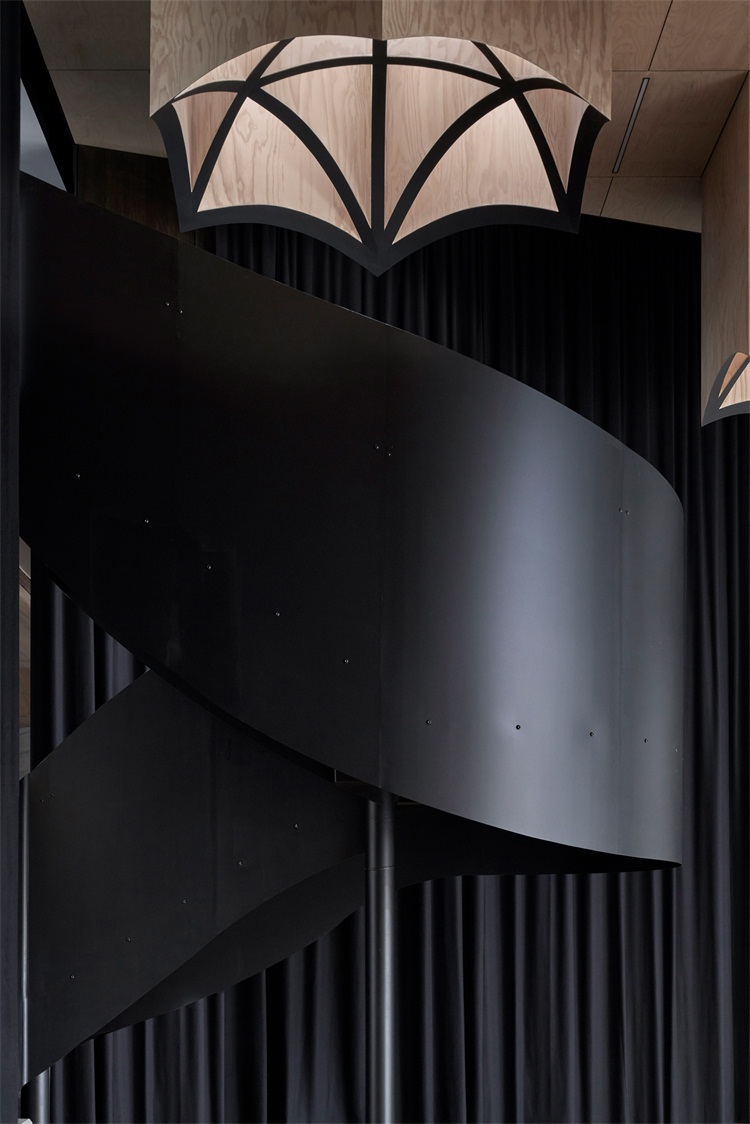 项目坐落于澳大利亚维多利亚州,卡洛琳·奇瑟姆学院艺术中心室内墙面铺设了胶合板,并设有金属穿孔屏风作为装饰。该艺术中心是学院戏剧、舞蹈和音乐系的所在地。