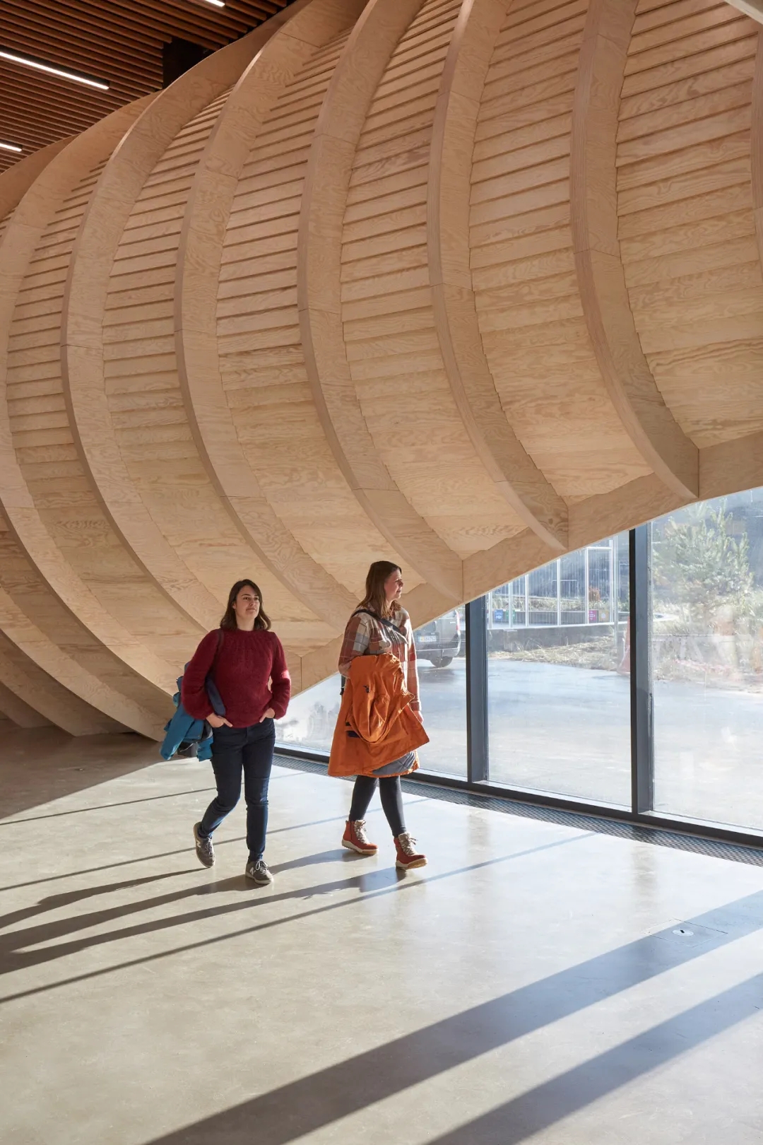 项目的核心理念在于务实,材料以木材、混凝土和钢材为主。气候中心标志性的语言是入口起伏的木制波纹,令其从所处的环境中脱颖而出。建筑师以莱姆维独特的渔船为灵感,致敬当地的文化历史与建筑传统。