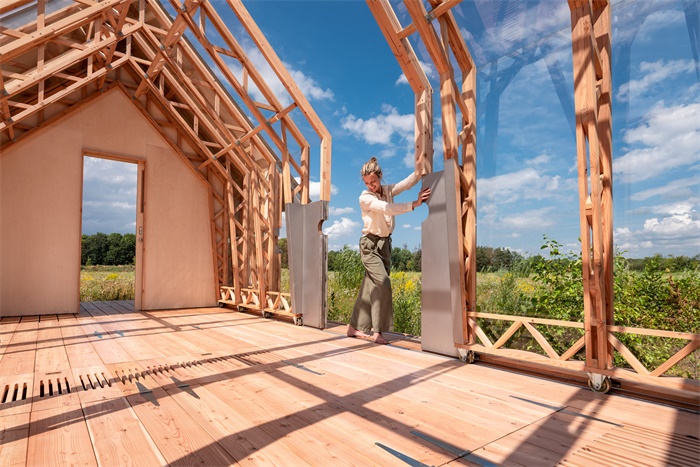 英国建筑师Caspar Schols为父母设计了一个带活动墙的花园住宅。这座平房供其父母居住和工作使用。Schols借鉴了他在2016年学习建筑期间完成的花园屋展馆,创建了两个商业化小屋。与花园式住宅一样,小木屋有内部横梁和玻璃结构,与外部木质墙壁和金属屋顶分开。内外部件都设置在交通路径上,通过可移动元素以创建不同的布局。