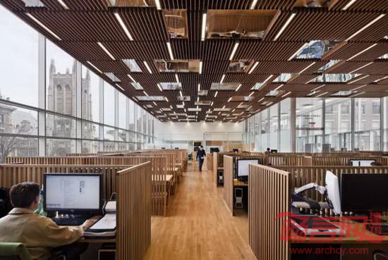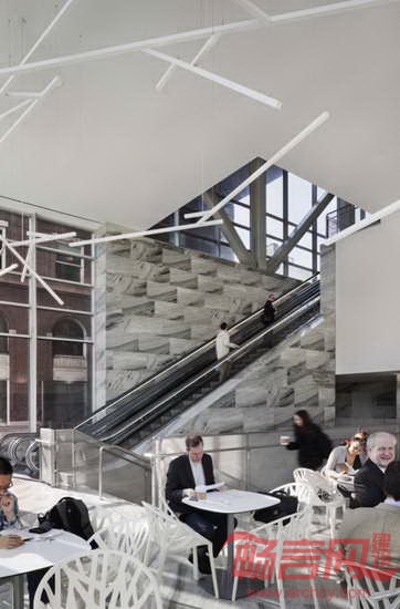 西班牙Moneo Brock Studio工作室完成了纽约哥伦比亚大学西北角大楼(Northwest Corner Building)增建项目。项目为大学增添了4500平米实验室空间和2000平米教室、办公和学习空间。同时,项目涵盖1300平米科研图书馆、170个座位的礼堂、公共咖啡馆和通往大学篮球场和排球场的入口。项目坐落于已有的Francis S. Levien体育馆上方,场地条件提出了严峻的结构挑战,要求新建筑跨度达125英尺,同时为实验室提供较大的开发层面,其结构楼面须有足够的硬度,便于安全使用显微镜等其他对于振动性敏感的设备。