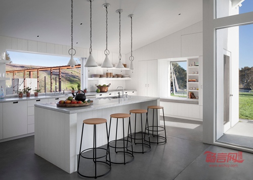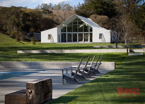 美国旧金山建筑公司Turnbull Griffin Haesloop受传统谷仓造型的启发,在加尼福利亚州北部的农场山谷里建造了一座外形似谷仓一样的现代化住宅。