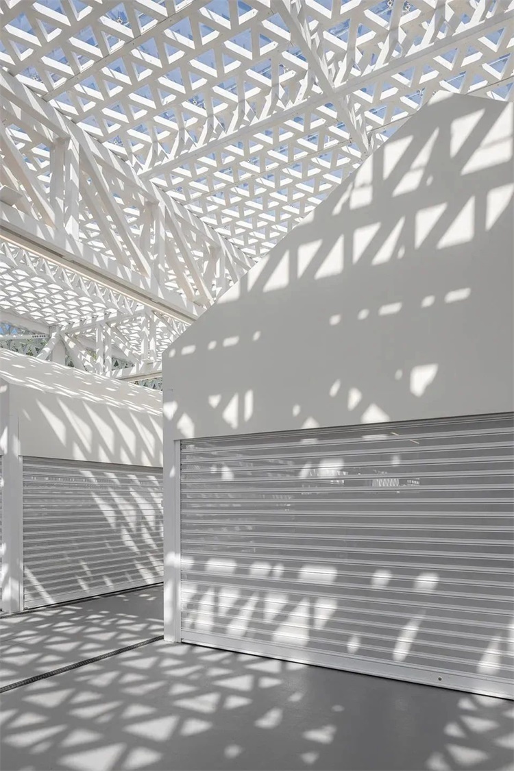 市场的主体建筑体块通过相应的建筑项目被保留与修缮,延续了原平面中一条被切断的线的形态,但在街道的沿街面呈现出更高的水准。建筑的室内空间被数个街头店铺所占据。