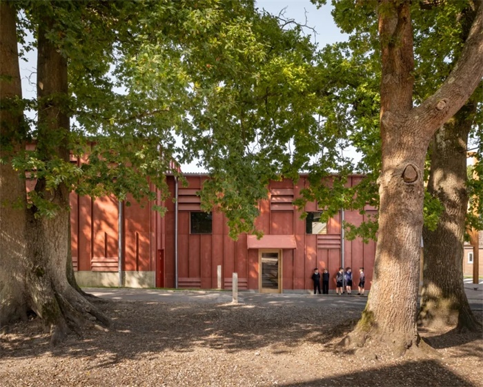 Jonathan Tuckey Design在英格兰东南部的一所学校中建成了一座新剧院。这座新的可持续建筑经过精心设计融入附近的建筑中,并成功地将原本毫无特色的停车场变成了一座充满活力的市民广场。哈瑞斯山预备学校(HorrisHill)坐落于伯克郡的一个乡村校园内,是一所为4至13岁男孩提供日托和寄宿的预备学校。校园占地85英亩,其中包括树林,运动场和一个菜园。