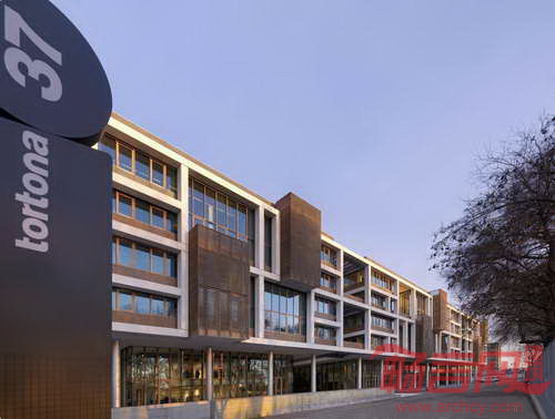 Tortona 37位于意大利米兰,是一个混合功能建筑综合体,包括围绕中央花园的五座大楼。每座矩形大楼均为6层,拥有南北两侧采光。空间层高7米,设置了内部夹层,实现了使用的灵活多边性。综合体内部容纳了展示厅、实验室、专业工作室、商店、办公空间,各自采用了定制设计:高度灵活的空间随时间推移可以一直保持可持续性。整个综合体立面的玻璃窗外悬挂了白色的栅格,达到建筑顶部时,形成了宽敞的露台,如同城市广场,员工来到这里,可以欣赏广阔的景观。项目的每个设计旨在实现最高的能源效率,巧妙协调建筑设计和工程之间的关系,包括配合地热线路使用的中央空调系统和室内的供暖壁板。