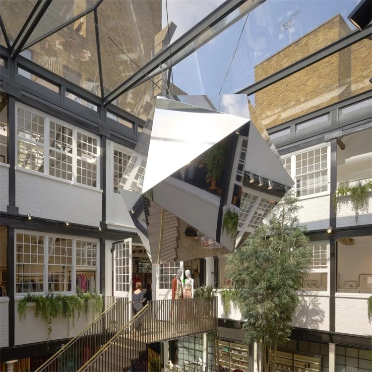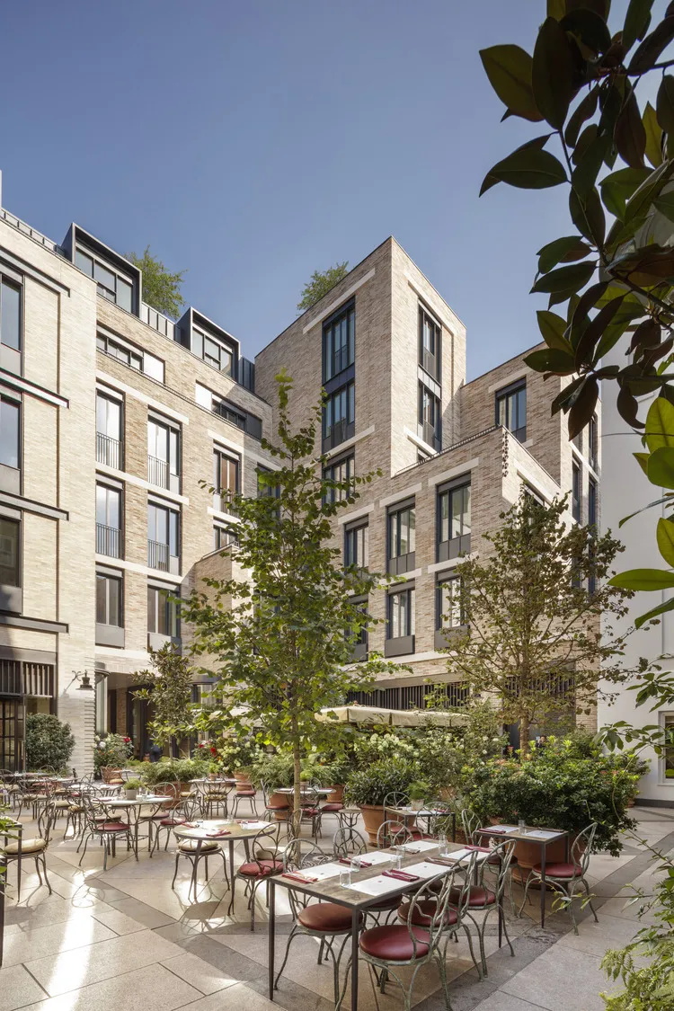 基地的公共区域担当起了串联不同建筑及不同功能的角色,设计从这里开始着手,新建的廊道将原有封闭的内部空间与周边通道和场地联系起来。访客可沿廊道穿过从国王街十九世纪建成的联排建筑,进入郁郁葱葱的中央庭院,探索伦敦全新的时尚概念商业及餐饮。基地地面层为连续的室内外空间网络,包含翻新的店面及室内装饰。