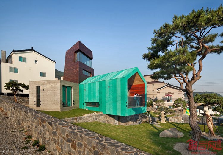 这个位于韩国Gimhaehyanggyo孔子学校后方的住宅项目由On Architecture工作室设计。建筑视野开阔,向金海市敞开。甲方最初希望创造多家庭住宅,后期由于土地限制,不得不更改了计划。尽管如此,设计师还是通过城市景观的渗透,吸引了甲方的关注。基于场地条件,设计师做出一座以观测塔外形呈现的家庭住宅。
