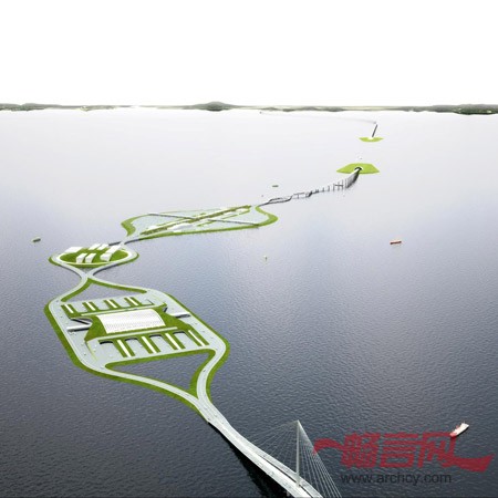 NL Architects为香港边境设计了一座概念性大桥。为了符合香港左侧行车而中国大陆右侧行车的实际情况,这座大桥被设计成相互交错的形式。