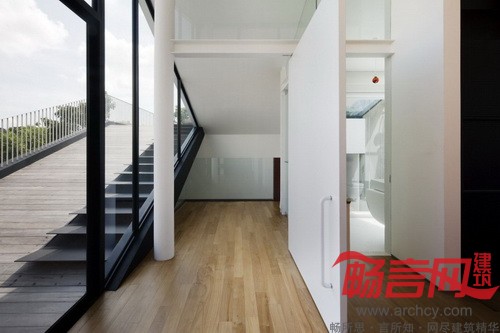 “业主希望我们将房子内部视野打开,以便他们在各个不同的区域都可以监护到2个孩子,”设计师介绍说:“同时我们也希望扩大房子的花园空间,尽管这座半独立式的房子占地面积比较狭小,而且绝大多数的地面都被建筑占据了。”