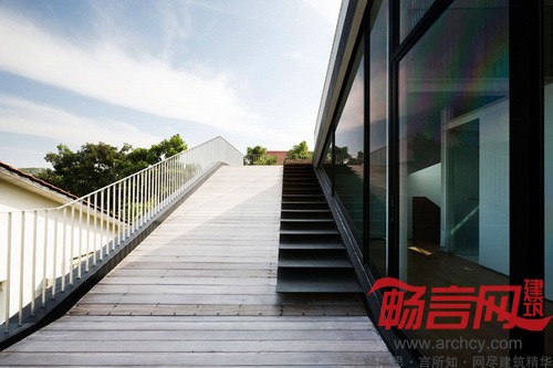 “我们很怀念爬上屋顶的感觉,”设计师说:“躺在倾斜的屋顶上,从同一个方向看着天空,我们惬意地交谈,享受生活中的每一刻。”