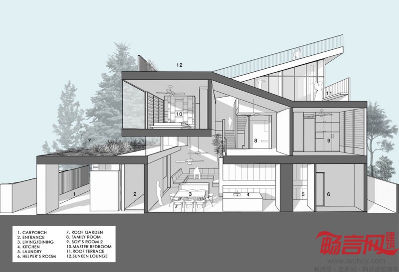 新加坡建筑设计公司Formwerkz Architects在当地设计了一座3层结构的花园房子,其建筑面积为3760平方英尺。
