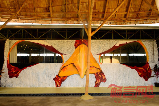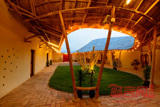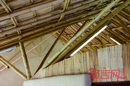 建筑材料全部为天然材料,仅限于竹子和泥土。设计难度在于,要使用这两种天然材料建造一座功能上满足使用要求、外观上满足21世纪审美的建筑。