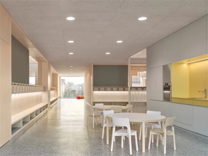 外部空间的优化设计在建筑的使用体验中起着重要的作用。因此,新的幼儿园远离街道,为开放式设计的高质量公共可用区域创造了足够的空间。最大的室外区域设有儿童游乐场和公共活动空间且均朝向格林德尔大运河 ,这样的设计同时也为该乡村地区的儿童和居民们提供了高质量的游玩及活动空间。