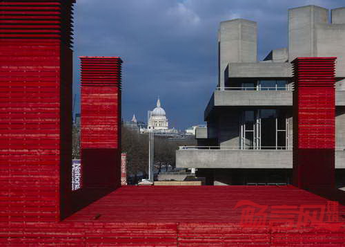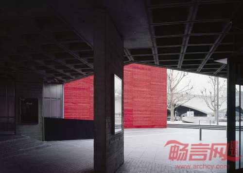Haworth Tompkins建筑公司新近设计了一个醒目的红色礼堂,项目位于英国国家剧院一片野兽派混凝土建筑之中。