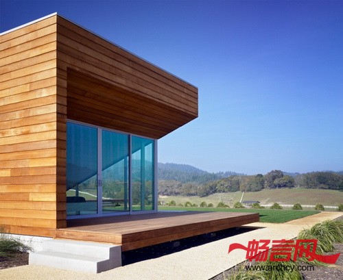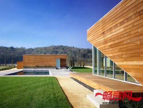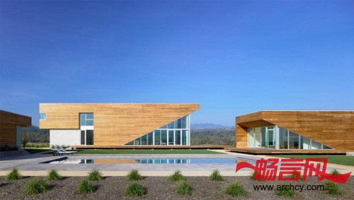 Edmonds + Lee Architects建造的这所Summerhill住宅位于加利福尼亚酿酒小村里。它的特别之处在于,房子的两个高处的角落下面被特别设计成了室外起居室和庭院。