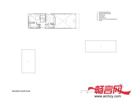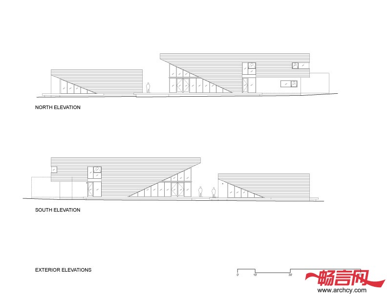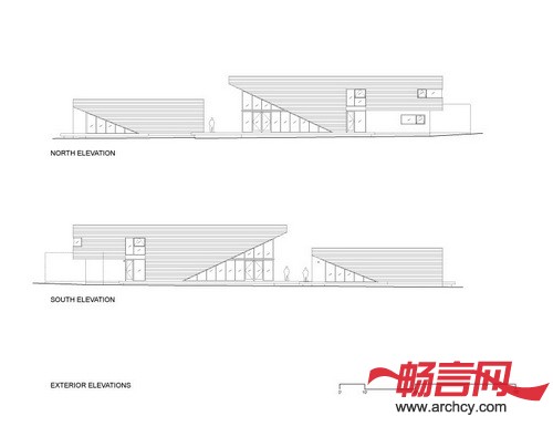 从室内看,地平线与远处山坡的线条融合在一起,这使自然景观与人造建筑相互作用的结果。两个建筑之间的实体空间和空地相互作用,这保证了即使实在很近的范围之内每个屋里都有很好的隐私性。