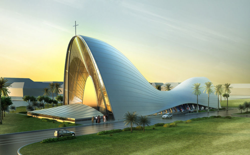 近期,DOS设计所中标了尼日利亚天主显圣容教堂的设计,该教堂从外观上给人一种非常现代的感觉,但本质上遵守传统天主教堂的基本原则。比如,会众厅的管风琴和祭坛上有一座拉丁十字架;大厅的信众席和两侧走廊都和教堂的主轴一致;拉丁十字架位于教堂的最高点。DOS设计所希望此教堂可以成为莱基和拉各斯城共同的圣地。
