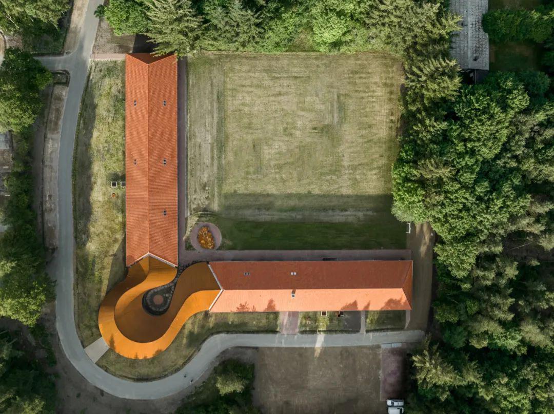 被改造为FLUGT的医院建筑原本是由两座细长的体量构成,BIG将它们从建筑和历史两个层面上连接起来,并增加了一座形态柔和的曲线型体量,为博物馆提供了500平方米的额外空间。即使站在远处,人们也能一眼望见这座温暖友好的建筑。