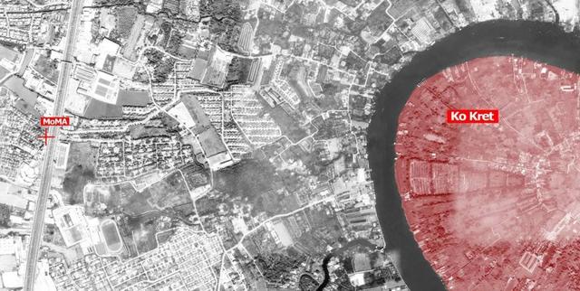 MoMA正处于上述环境涵构中,它位于曼谷市郊最繁忙的交通枢纽,大量快速车流促使拉查府卢克路(Ratchaphruek Road)两旁充斥著各种商业招牌,其硕大干道可通往大皇宫(The Grand Palace)、大羅斗圈纪念广场(Wongwian Yai)、曼谷大学(Bangkok University)和柯叻岛(Ko Kret),而柯叻岛更是曼谷唯一的岛屿,十多年前岛上随处可见萤火虫,替曼谷市民提供一处自然之所。