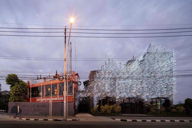 MoMA设计过程从一开始街道常见的铝招牌作为研究对象,随后将铝材作为单体元素串连至整体建筑。即便MoMA仅是城市中的一个建筑体,但透过开发与研究铝构件断面,从而打造出特殊的建筑肌理感,替充斥著钢筋水泥的泰国城市,重新找到另种新地域性。