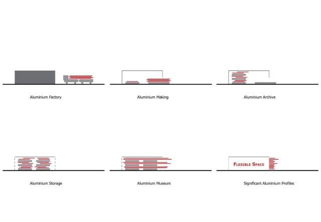 MoMA是Museum of Modern Aluminum的缩写,项目源自于一群有雄心壮志的业主,以复兴铝在泰国的重要性为目标。泰国曾在20世纪末作为东南亚最大的铝材制造国,其多样又丰富的铝型材不仅满足本土市场,更一度以输出海外市场闻名;然而1997年无预警的亚洲金融危机(Asian Financial Crisis),促使泰国引以为傲的铝产业为了生存,以低价贩售铝型材给各地五金市场,导致杂乱的广告招牌、阳台围篱、底层扩建构成现今曼谷街头的景色。