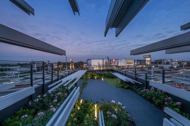 HAS design and research希望MoMA不仅作为大众空间,并可替忙碌的城市居民提供休憩场所。因此,建筑延续柯叻岛上的自然景观至项目场地。在白天MoMA就像一棵蒲公英,建筑悬挑构件随风摇摆,替繁忙又紧张的拉查府卢克路增加轻柔感;到了夜晚,MoMA摇身一变成为了萤火虫,替商业气息浓厚的拉查府卢克路增加一些生态感与松弛性。