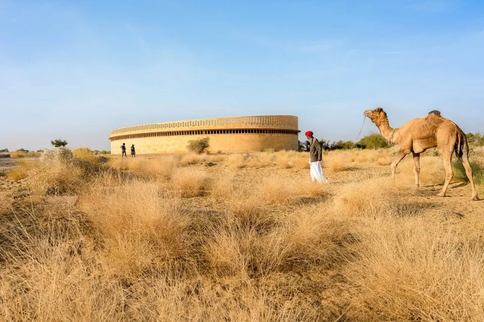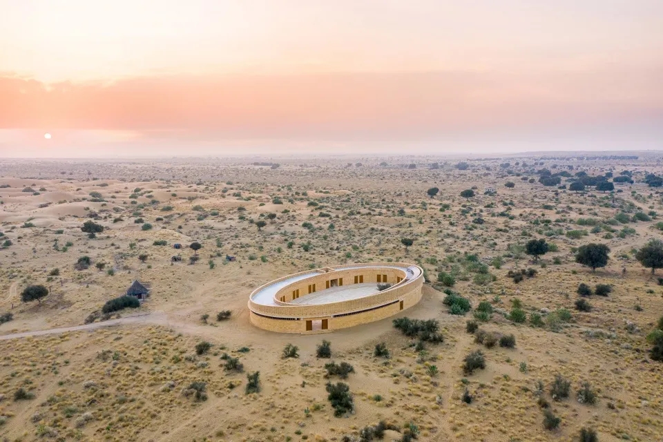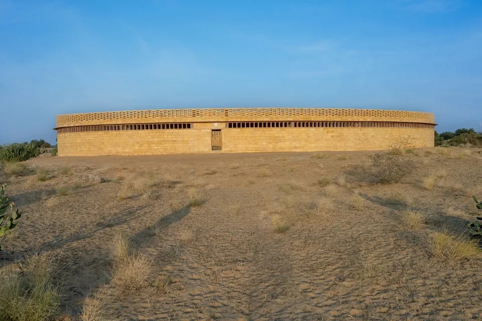 建筑师选择用三个椭圆形的结构来彰显女性的力量和无限潜力。从顶部看,这个令人惊叹的椭圆形结构与杰伊瑟尔梅尔地区的沙漠环境完美地结合在一起,显著的弧形墙壁使人联想到拉贾斯坦邦声名远扬的城堡。