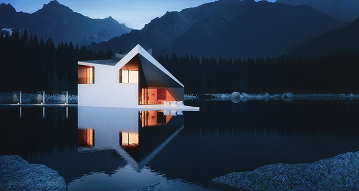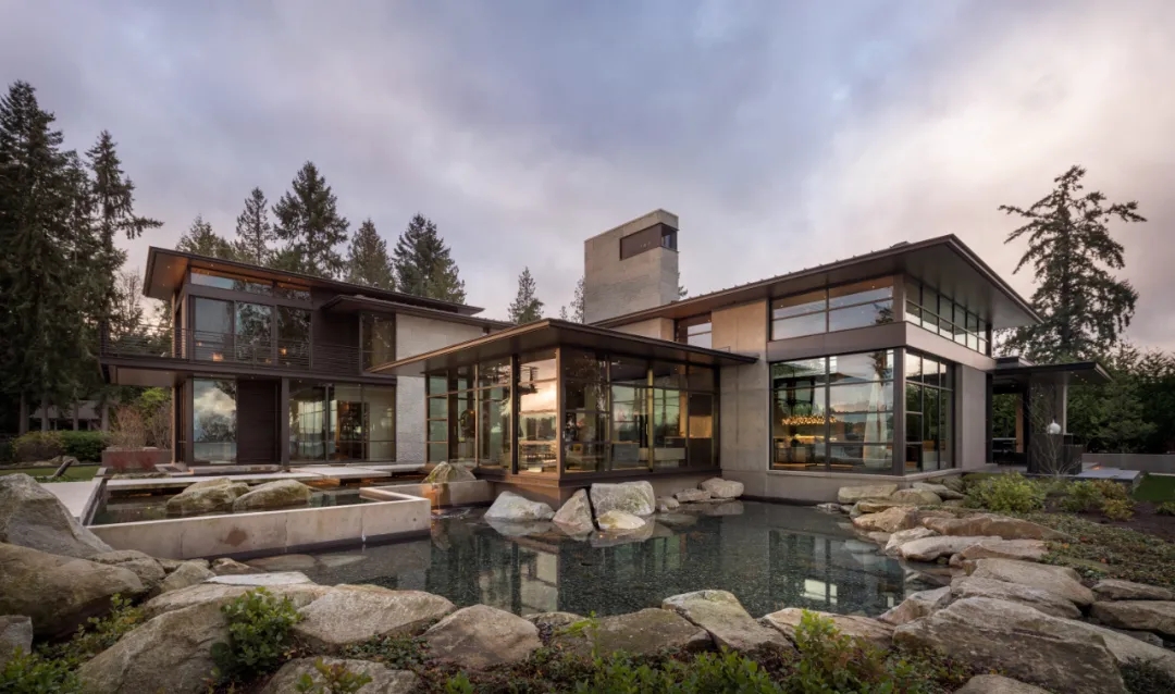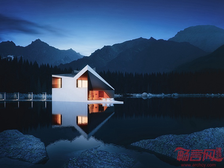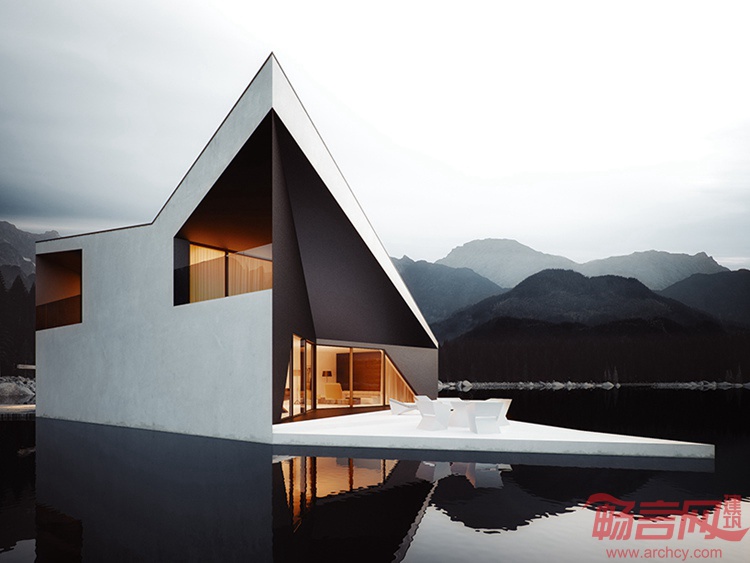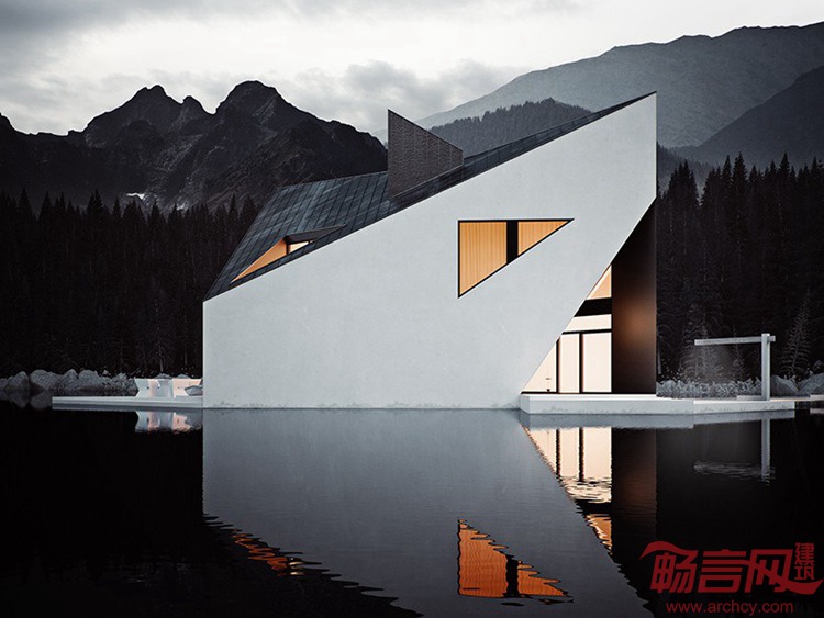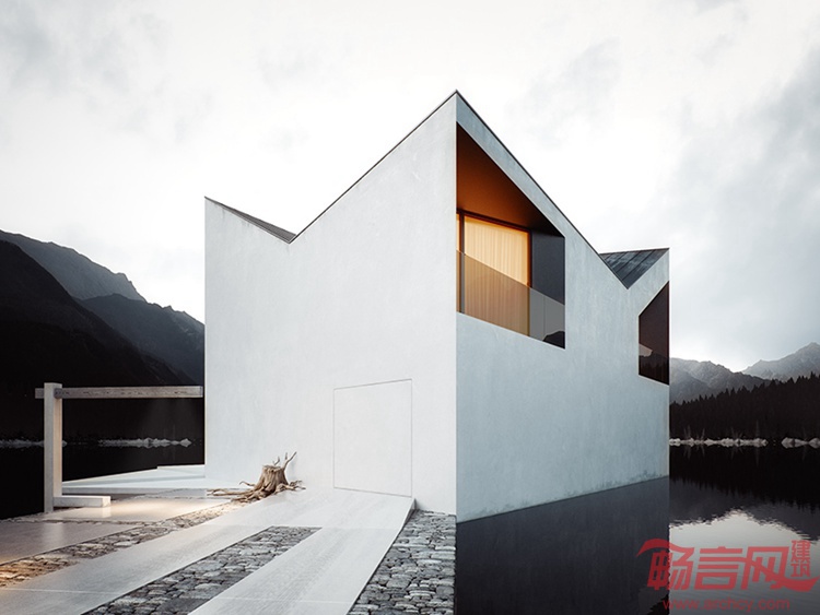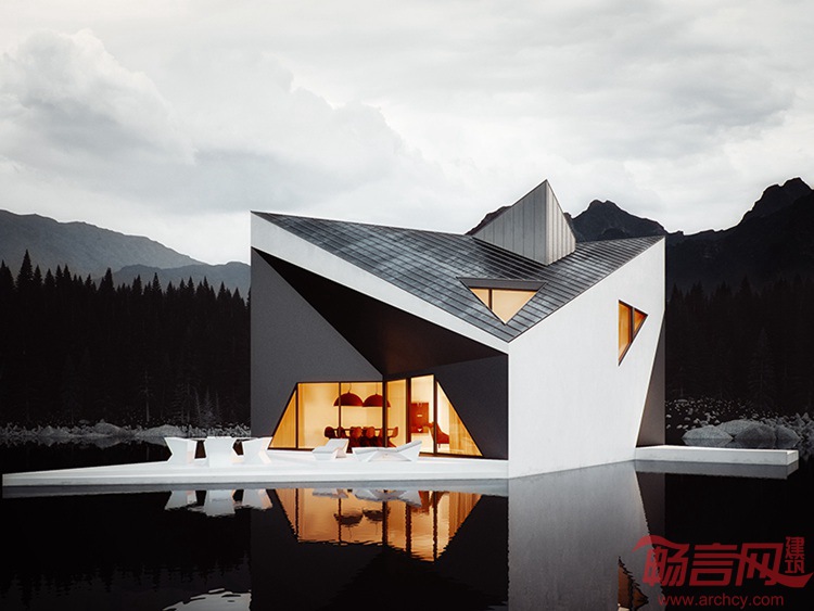 这座由81 WAW PL工作室设计的王冠湖畔住宅位于波兰,建筑线条简洁,坐落于湖畔,与周围美丽的景观相得益彰。建筑尖锐的屋面和单色对照的设计都凸显了其受王冠启发的外形。建筑包含白色的墙面和锐利的线条,与周边山景相融合。同时,两层住宅设有落地玻璃窗,一层露台使建筑同湖泊相连接。
