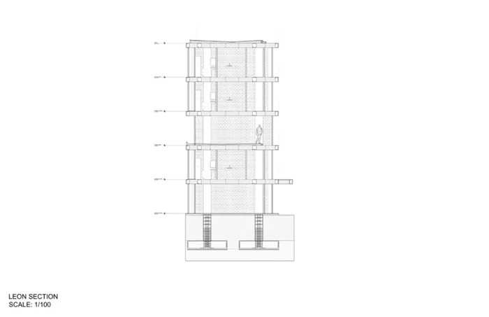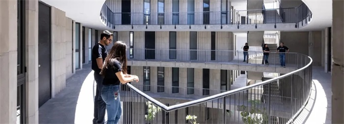 砌块有一个中空的内部,填充了灌浆以增强强度或绝缘,可以确保隐私和遮阳,同时赋予项目独特的特性。为了组装墙壁,各个单元在固定到位之前会在杆的框架上滑动。这些立面沿着公共楼梯形成一系列共享露台,从而增强社区意识,使居民能够与邻居进行社交。这些单元沿着面向庭院的外部走廊布置,两个单元彼此不会面对,从而增强了隐私感。