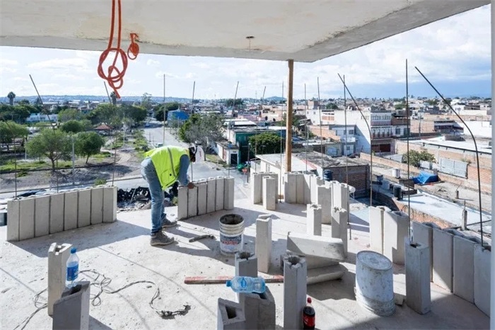 由于墨西哥的气候,外墙的设计非常简单。设计团队最初计划使用预制混凝土板,不过,这意味着预算的很大一部分将流向距此四小时车程的一家预制装配厂、一家卡车运输公司和一家起重机操作员。因此,设计团队没有使用需要专业知识和重型机械来组装建筑组件,而是与当地制造商合作开发了一个模块化单元。