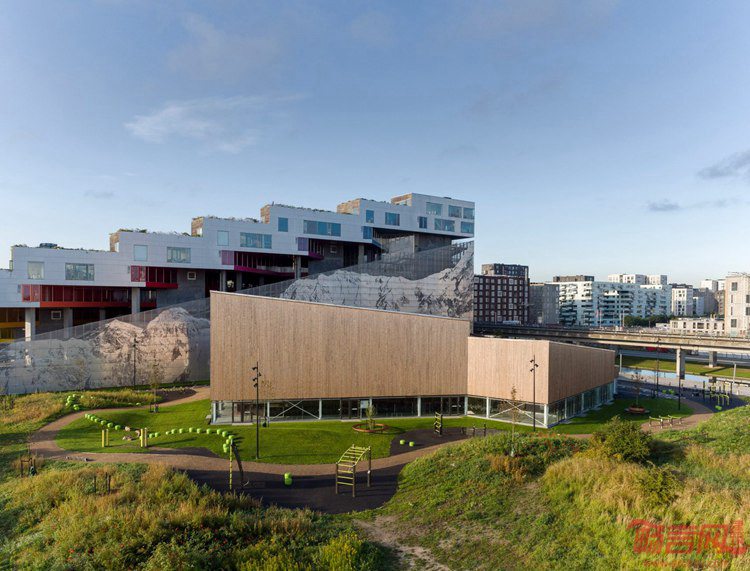 丹麦NORD工作室完成了哥本哈根多功能体育设施的设计。该项目包含若干木制结构组合,从中央向四周扩散,涵盖不同的功能分区。建筑毗邻BIG设计的标志性山形住所。与其邻近建筑一道,体育中心造型低调,占据了此前曾计划建造口袋公园的场地。设计师表示,这座多功能建筑开发和设计只在成为赋有活力的城市空间,在大型建筑和悠长的道路区域中营造新型社区和社会可持续性。