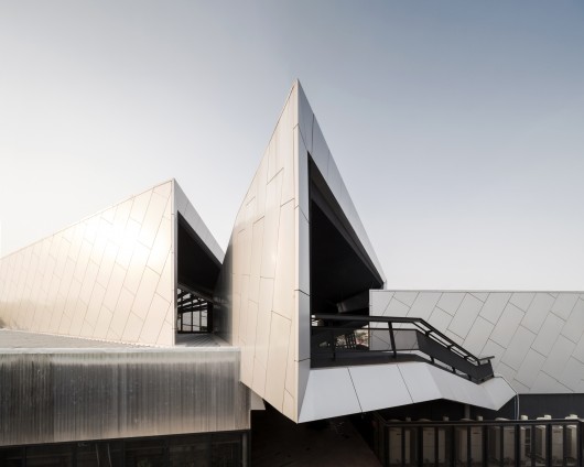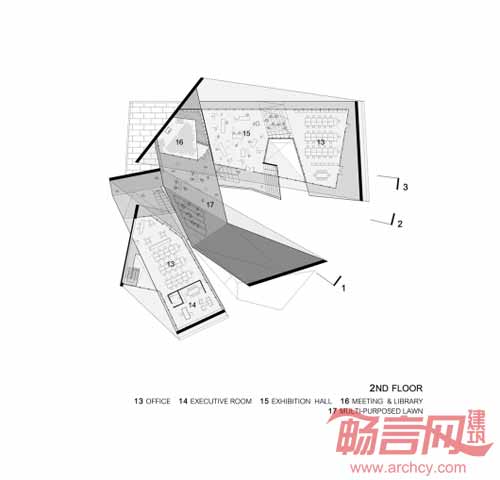 项目坐落于泰国Udonthani省,该地区是与中国接壤、湄公河盆地、泰国东北部的经济中心。项目场地位于城市环路,毗邻国际机场和快速发展的郊区住宅区。几个从车道上方耸立的折叠弯曲的平面构成独特的建筑外形,表现出公司动感的形象以及与城市交通网络的联系。每个折叠面创造出重叠的功能区域,同时构成展开的半露天空间。