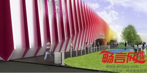 建筑的渐变色彩代表了葡萄酒的主要种类——白葡萄酒、红葡萄酒、粉红葡萄酒,同时符合常识概念以及美学、象征和想象力方面的特点。