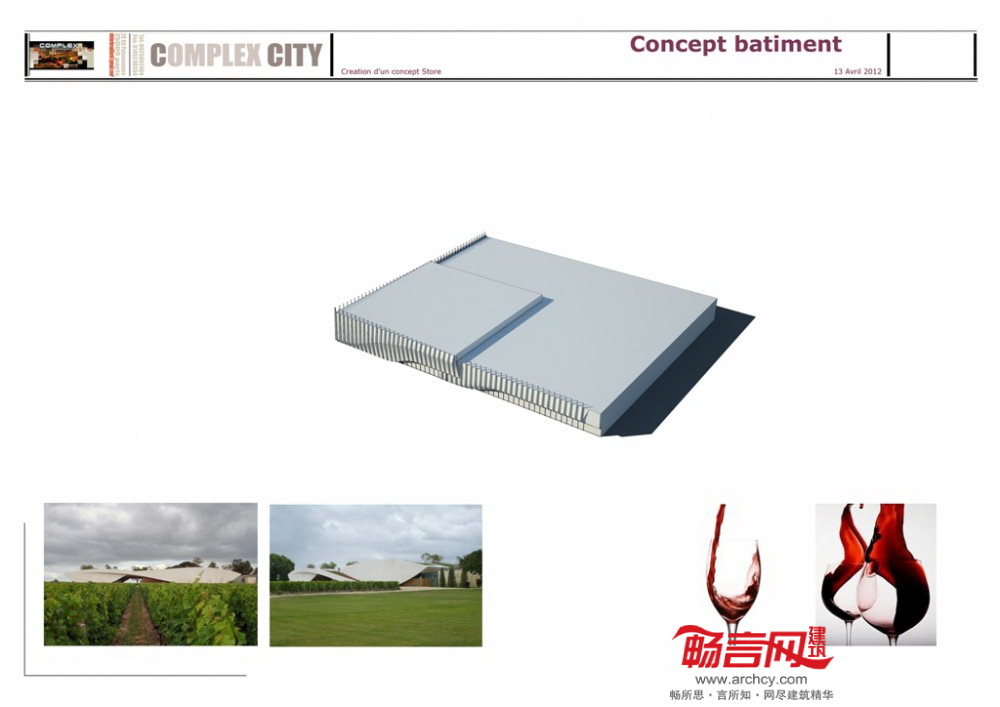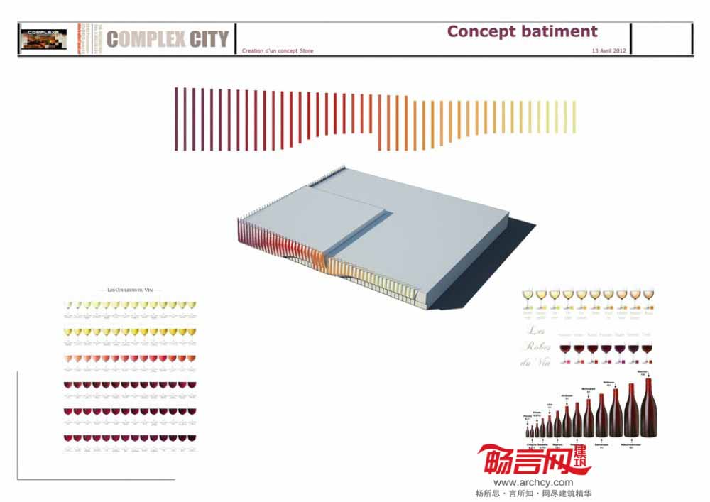 COMPLEX CITY建筑事务所与我们分享了其关于法国一家红酒概念店设计的三大方面:纵向性、视觉性和敏感性。建筑立面纵向性体现了葡萄藤蔓的直线性特征,而曲面的敏感性则表现了人们品尝美酒时的微妙的感官意识。